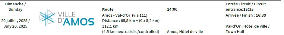 Several arrivals and departures are planned at different locations in the region to provide an unforgettable experience for the cyclists who participate annually. Sanctioned by the Union Cycliste Internationale (UCI), the Tour de l’Abitibi is the only competition in the UCI Junior Nations Cup circuit to be presented in America.